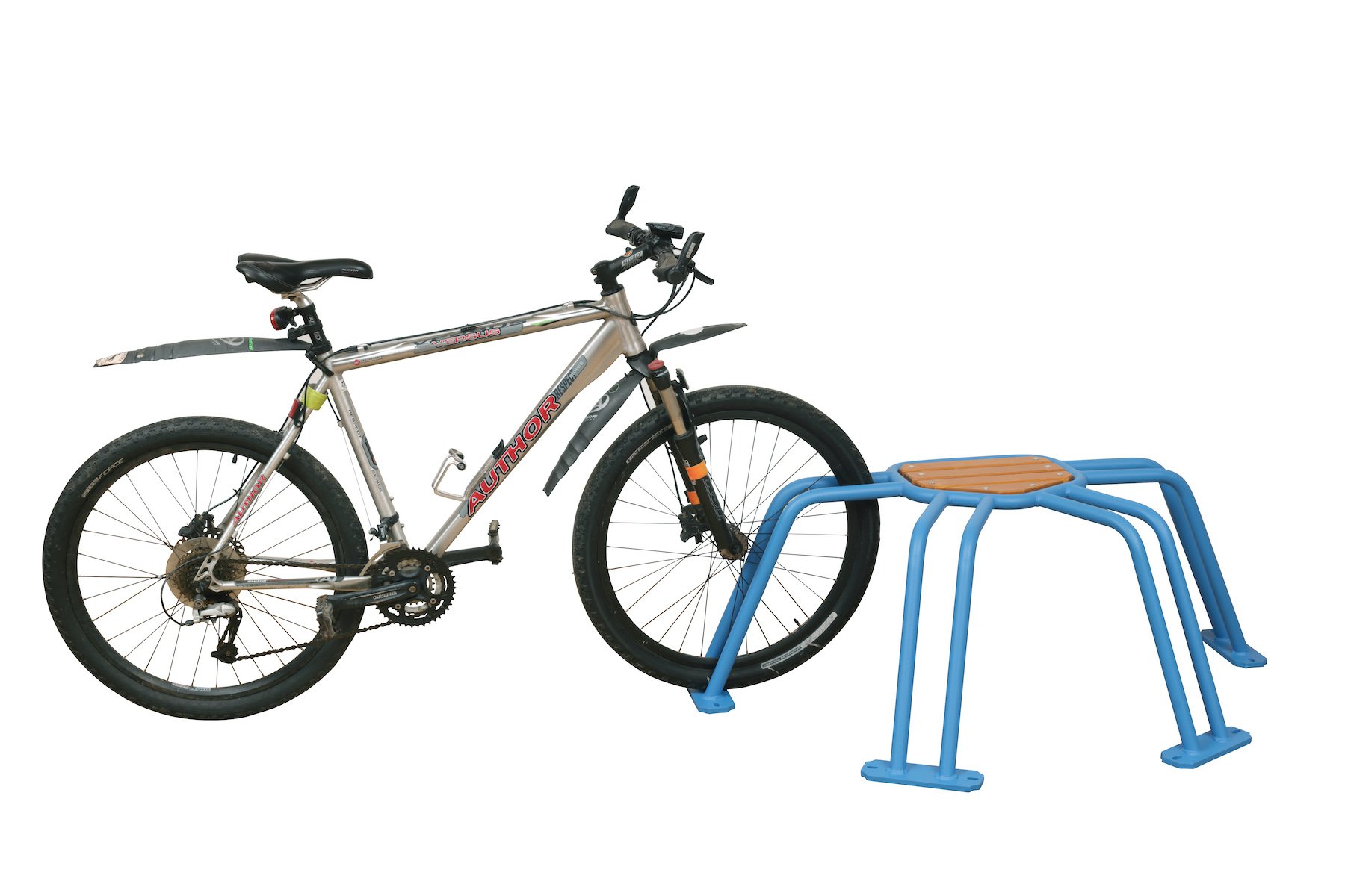 Netradiční provedení stojanu na kola, doplněného sedátkem ze dřeva. Trubková konstrukce ošetřená žárovým zinkem pro delší životnost a kvalitní práškovou barvou v odstínu dle požadavku. Lze kotvit do země. Volitelný druh dřeva společně s odstínem lazury.