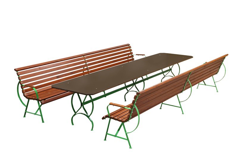 Vše v délce 2,5 metru. K soupravě se vejde až 16 dětí. Deska stolu je omyvatelná. K soupravě je možné objednat krycí plachtu na zimu.