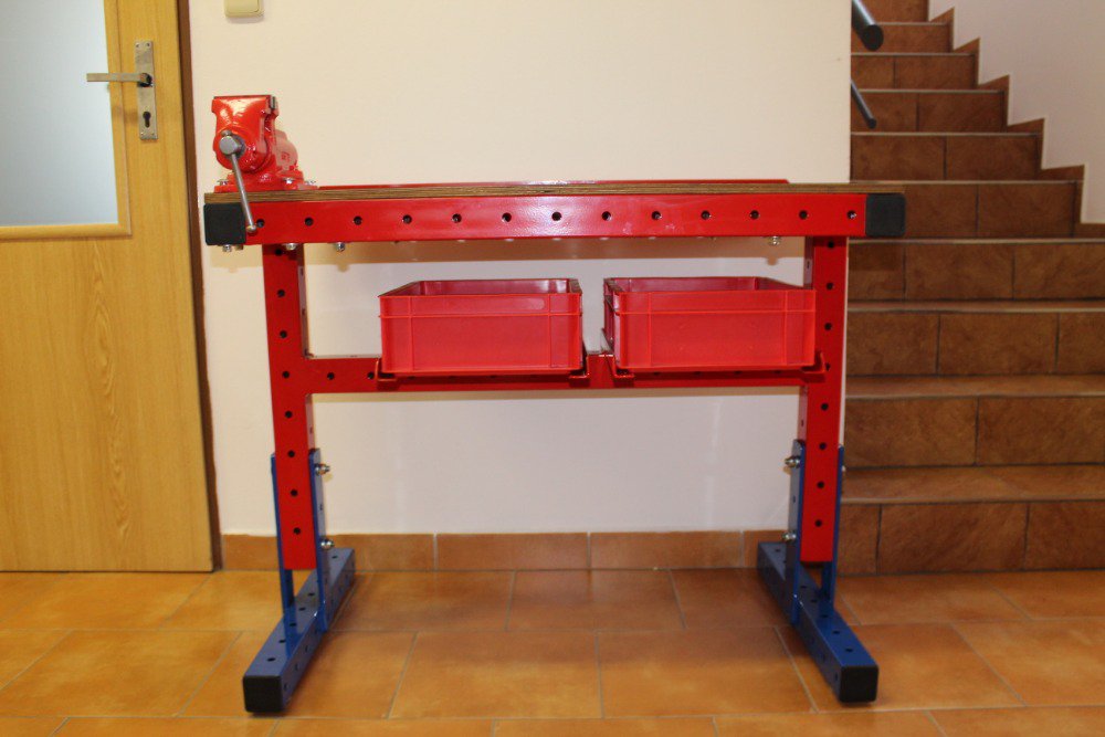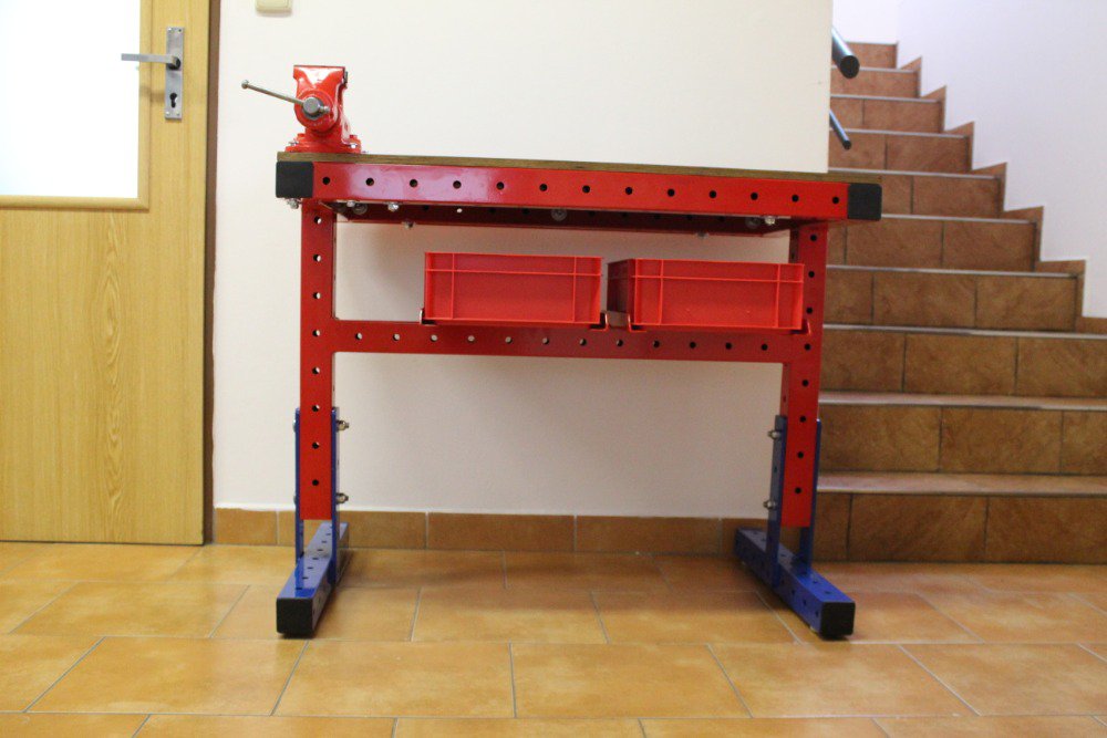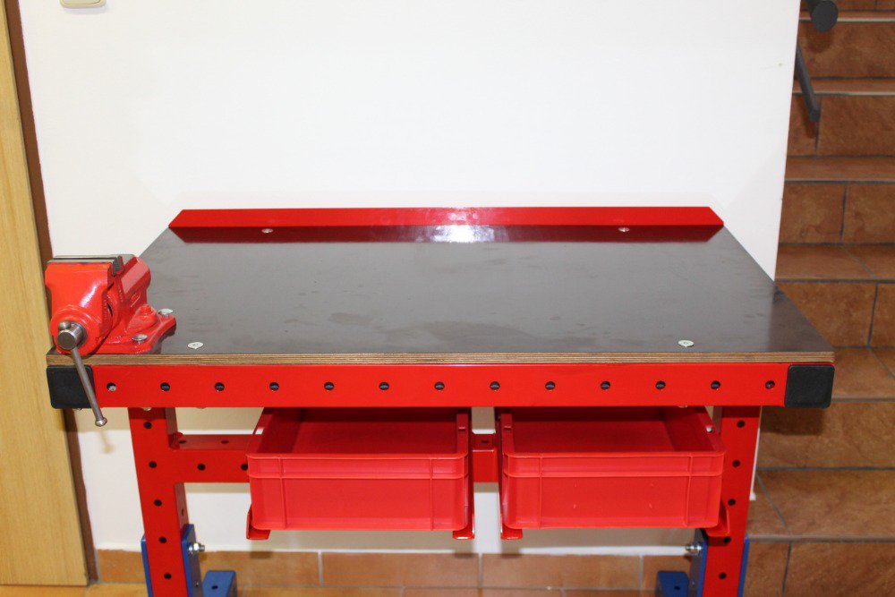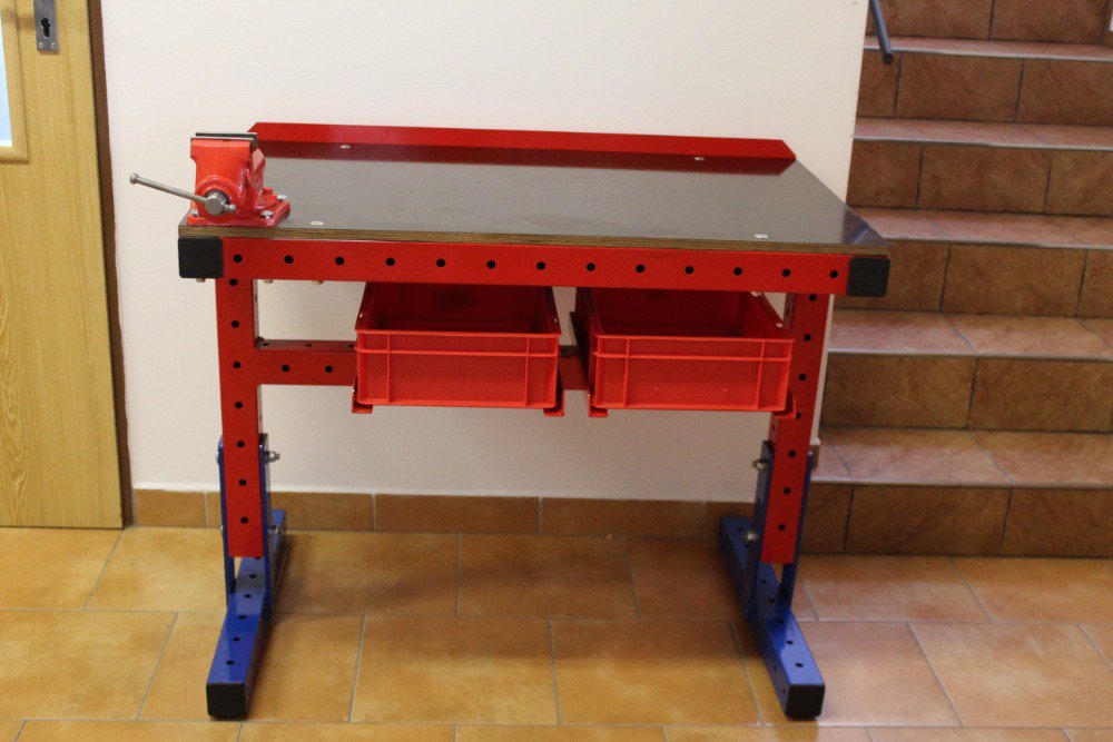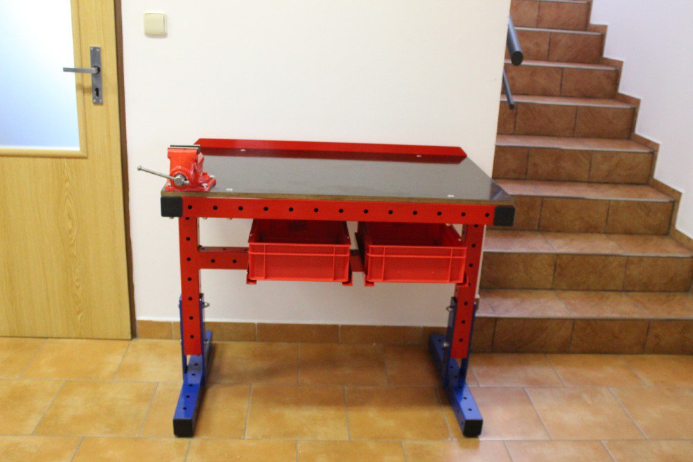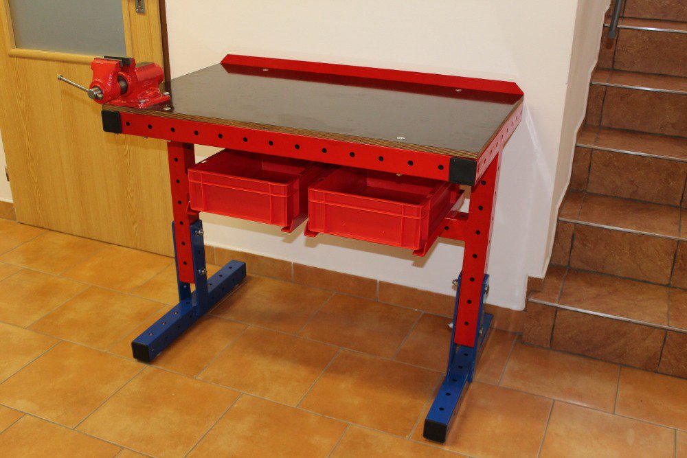 Dětský pracovní stůl, který se dodává ve 2 variantách, se svěrákem nebo bez svěráku. Materiál pro výrobu: konstrukce pracovního stolu je vyrobena z ocelových profilů a deska pracovního stolu je z voduvzdorné překližky.