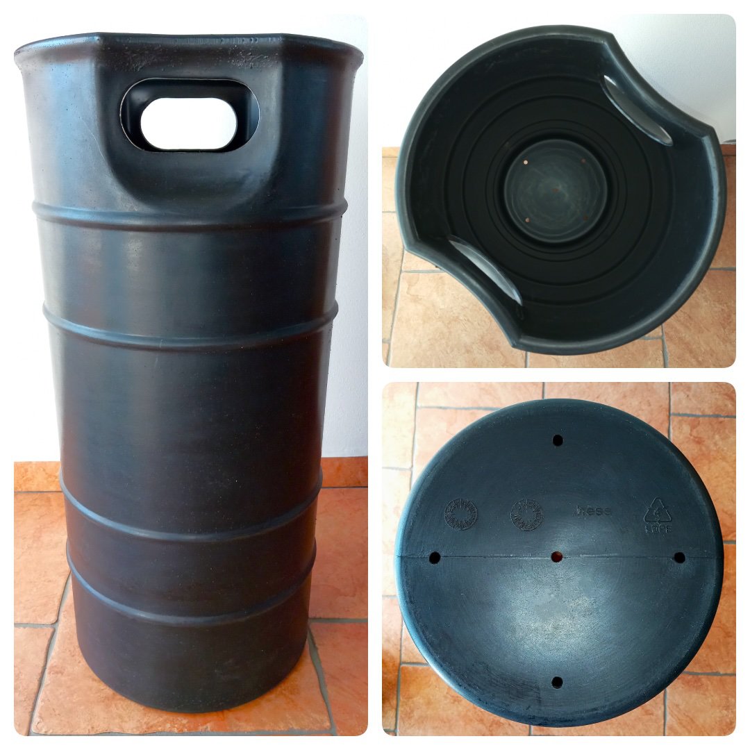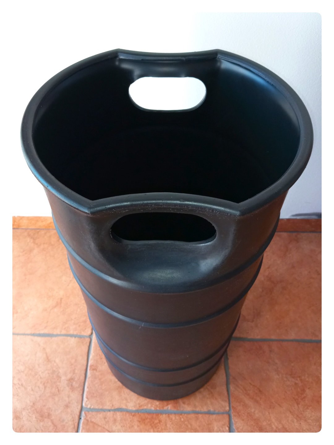 Odolná plastová nádoba 40 l s odtokovými otvory – ideální jako vnitřní vložka do odpadkových košů, snadná údržba a manipulace.