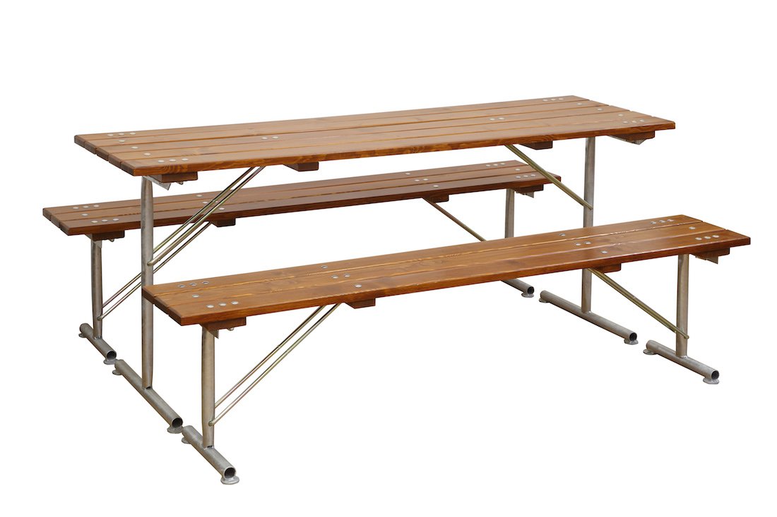 Kvalitní pivní souprava zinkovaná (povrchová úprava konstrukce zinkováním) se skládá z pivního stolu a dvou pivních lavic.