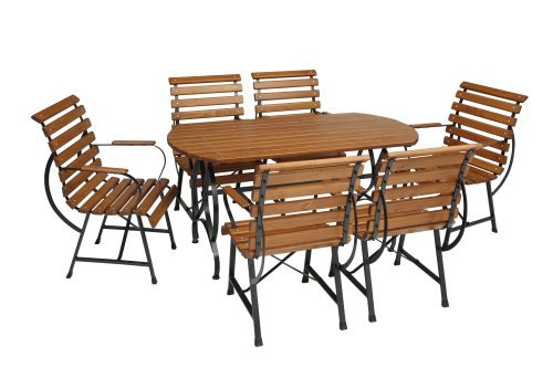 - nadčasová souprava zahradního nábytku se skládá z oválného stolu, doplněného 6 pohodlnými křesly s rovnými madly