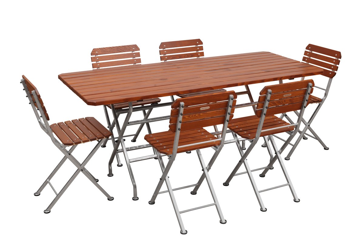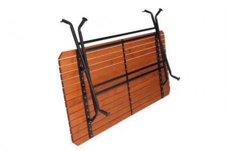 Praktický skládací stůl vyrobený z kvalitních materiálů s prodlouženou délkou pro pohodlné sezení v čele stolu.